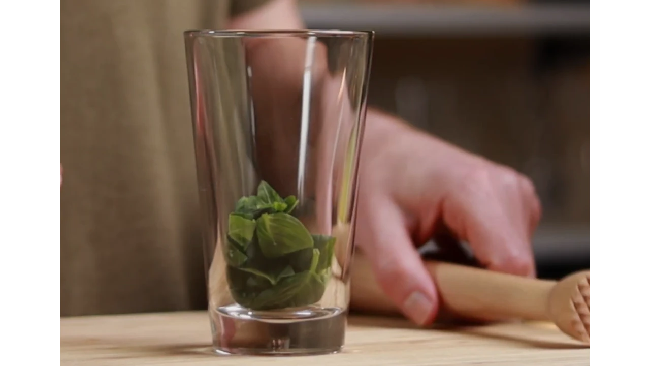 Use a muddler to gently press the basil.