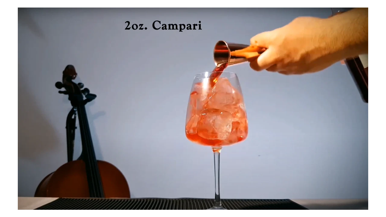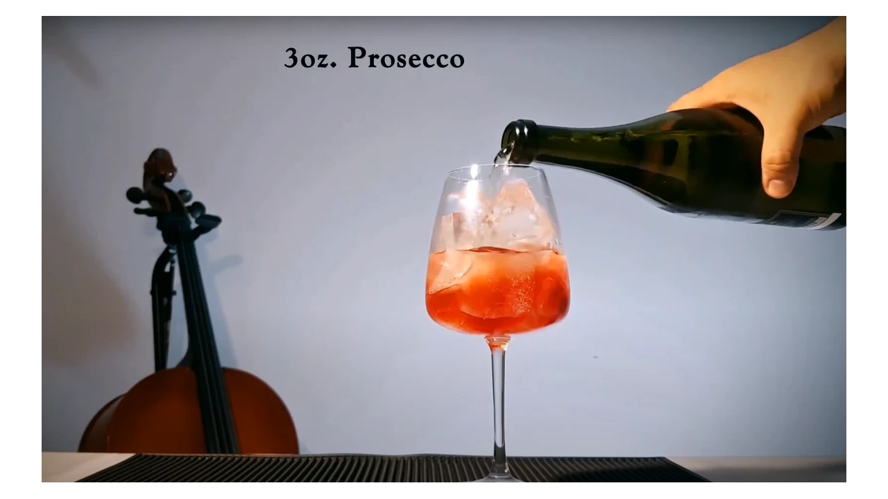 Slowly add 3 ounces of chilled Prosecco. This sparkling wine adds brightness and balances the bitterness of Campari.