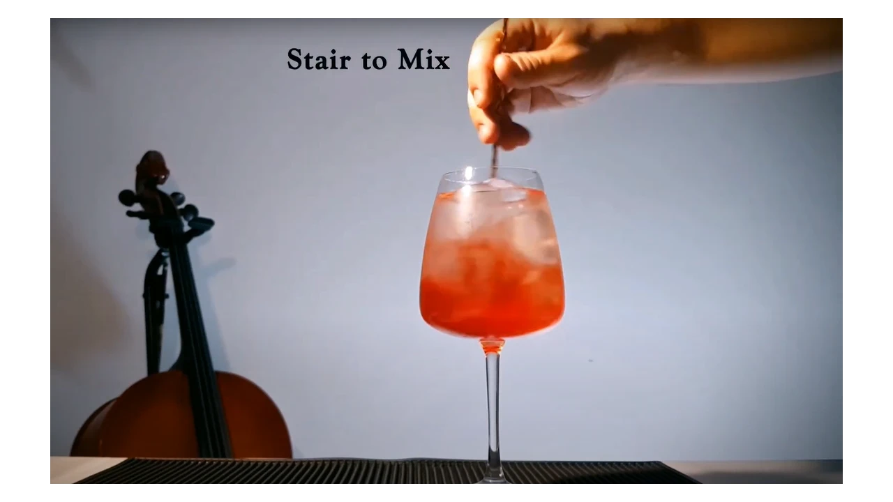 Mix the drink lightly with a bar spoon. Avoid stirring too hard to keep the bubbles alive.