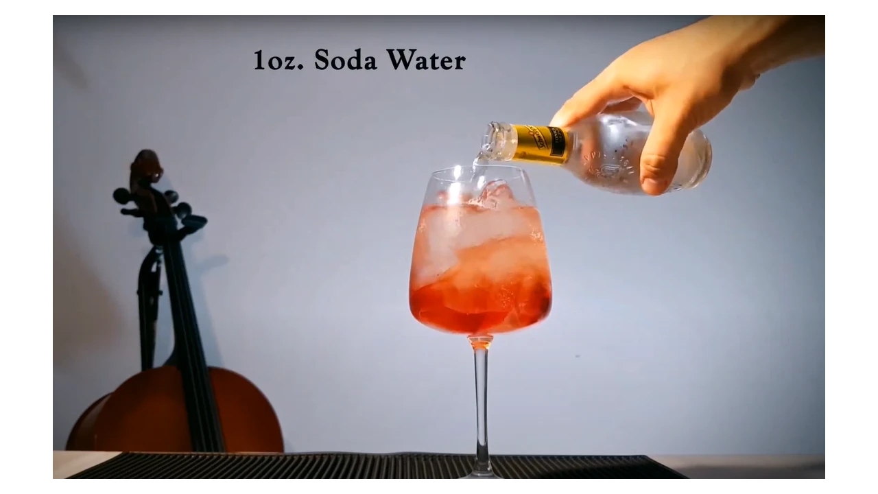 - Add ingredients in the right order: Campari → Prosecco → Soda water.