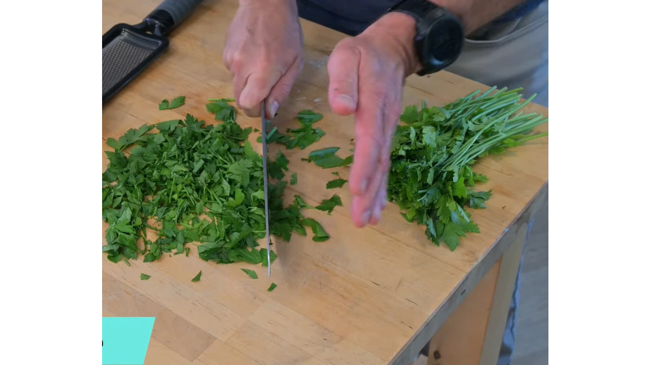 Take fresh Italian flat-leaf parsley. Wash and dry it well. Chop it very finely using a sharp knife. The smaller pieces blend better with the other ingredients.