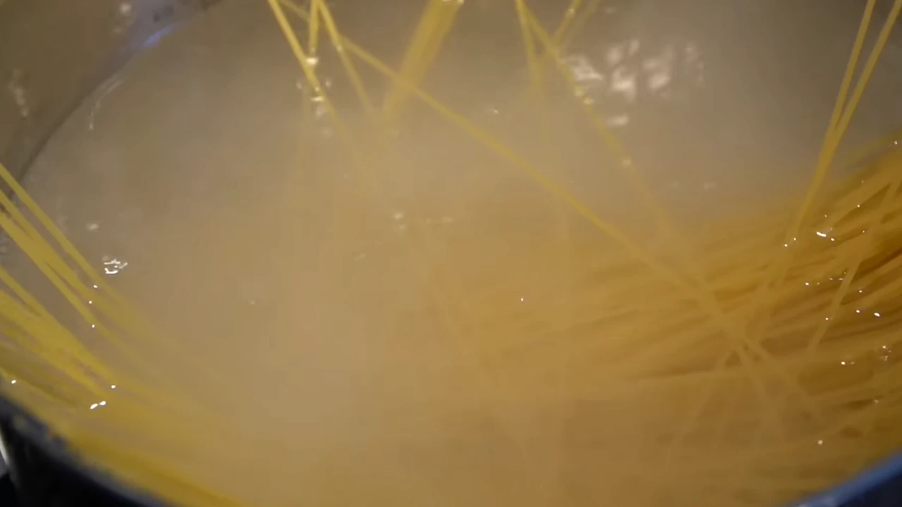Bring a large pot of salted water to a boil. Cook spaghetti until al dente according to the package instructions. Reserve about 1 cup of the pasta water before draining.
