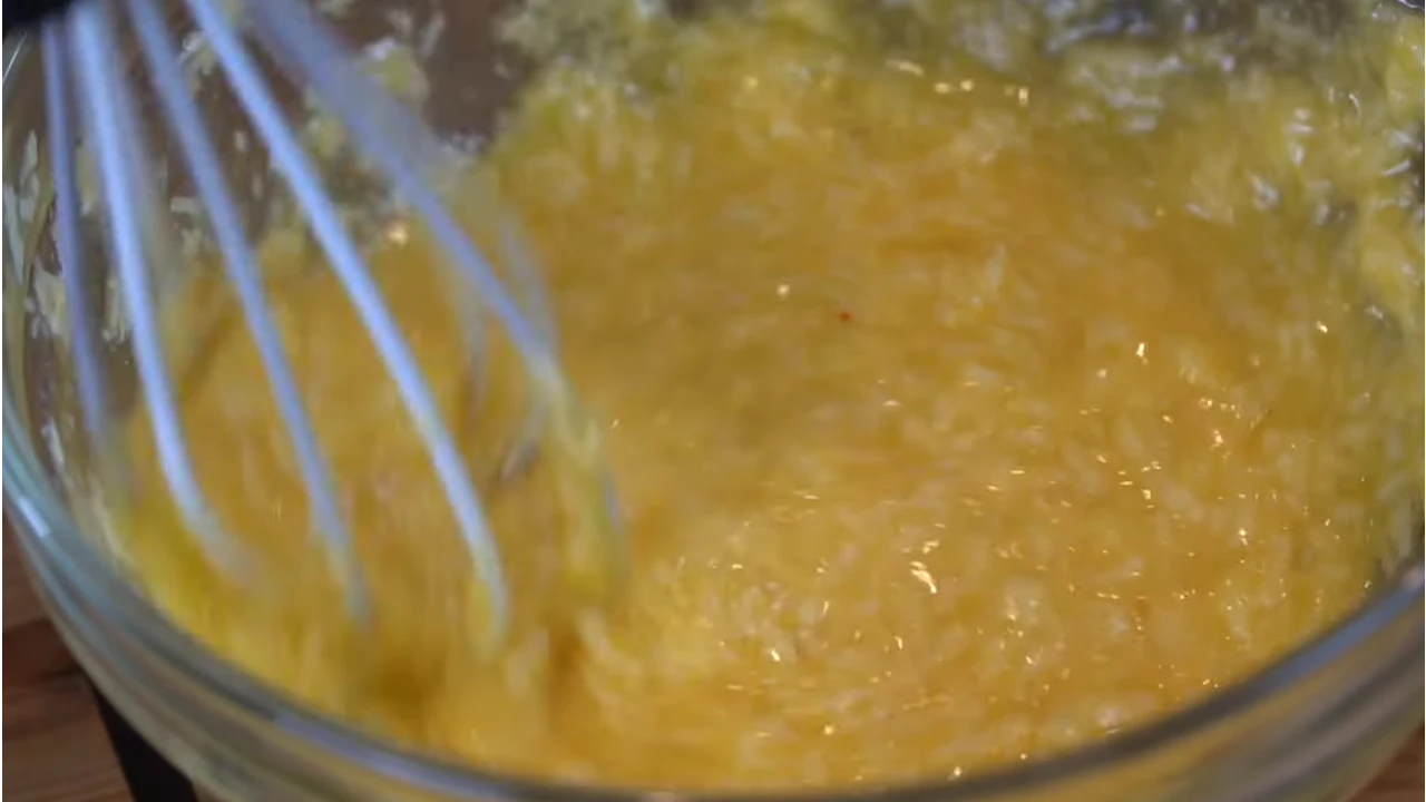 Whisk together 2 egg yolks, 2 whole eggs, and grated pecorino romano cheese. Mix until smooth and creamy. This will form the rich, velvety base of your carbonara sauce.